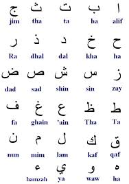 L'alphabet arabe commence de la lettre alif et termine par la lettre ya.