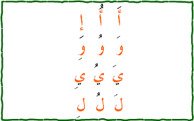 Les vocalisations en arabe sont la fatha, la damma, la kasra, le soukoun, la chadda, le tanwine.